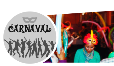 globos de colores, antifaces e instrumentos inflables.
